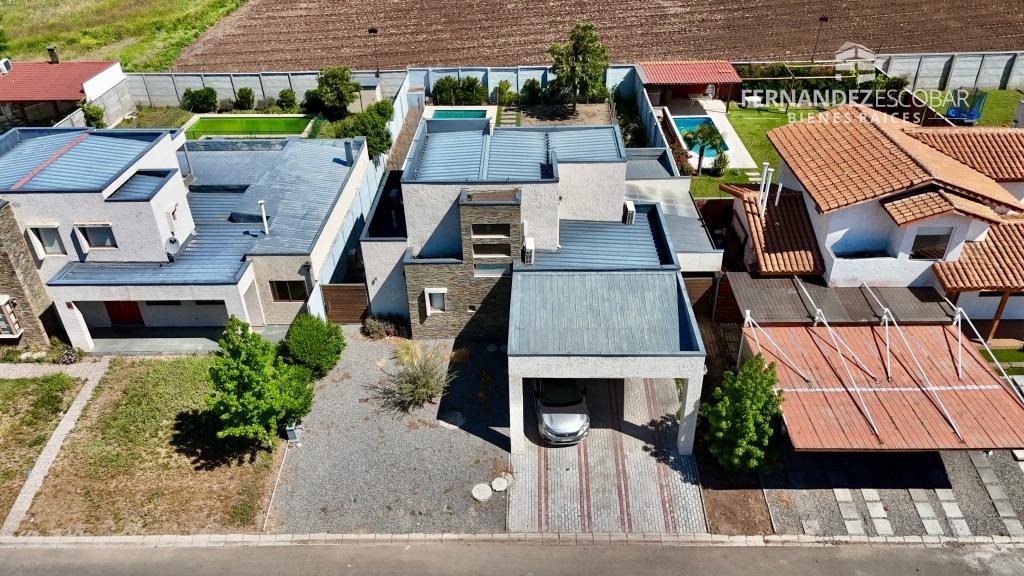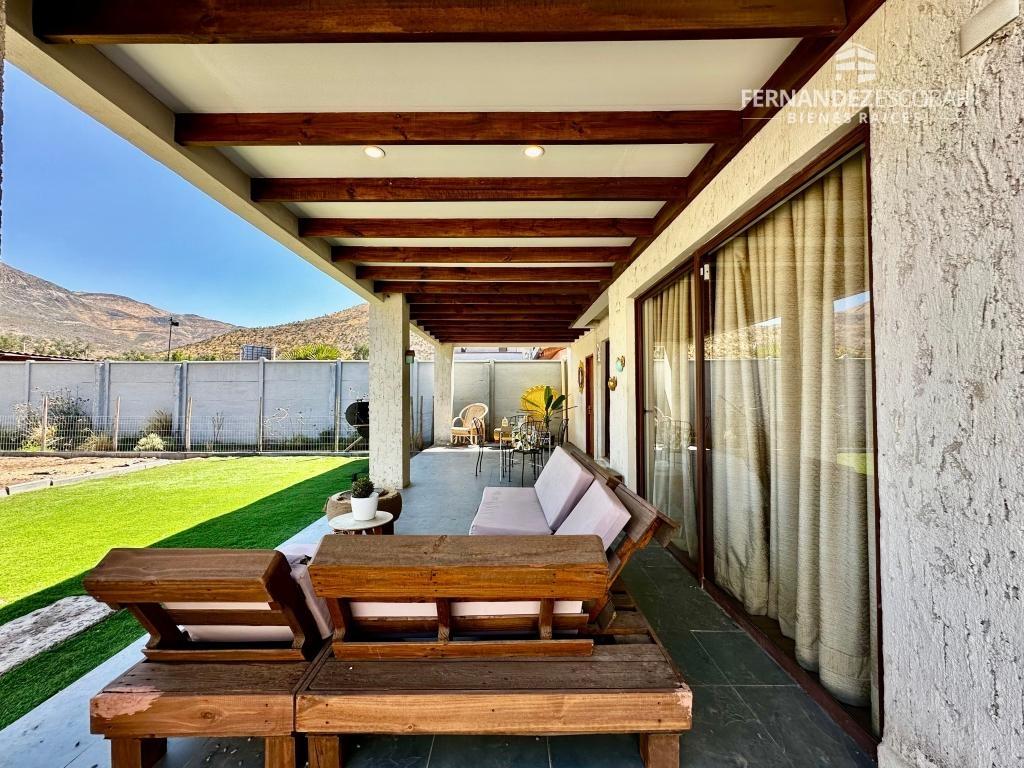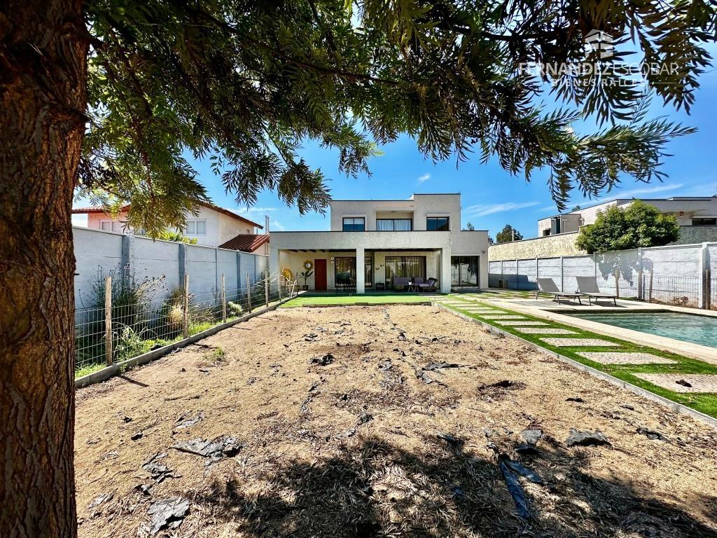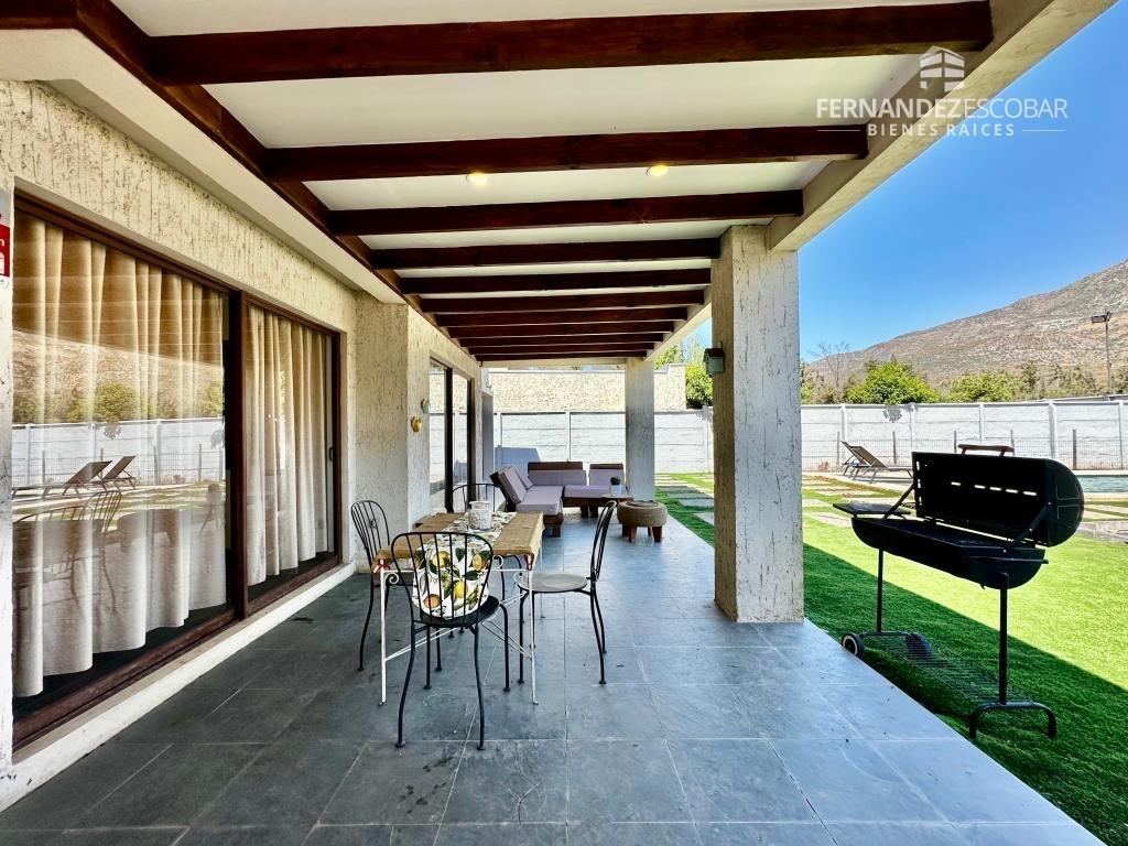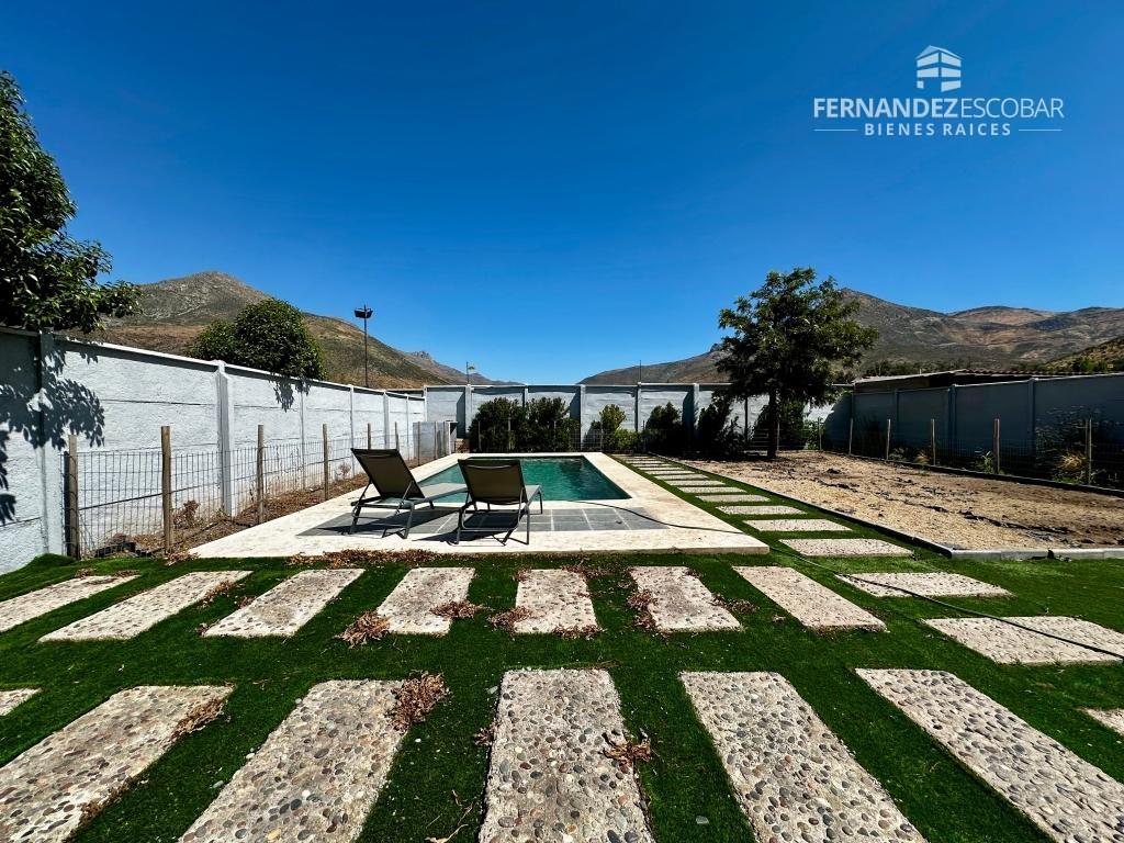 EXTERIORES: Frontis con estacionamiento para 3 vehículos. Patio trasero con piscina de 8x4. Amplia terraza techada. Tiene derecho de agua para riego.