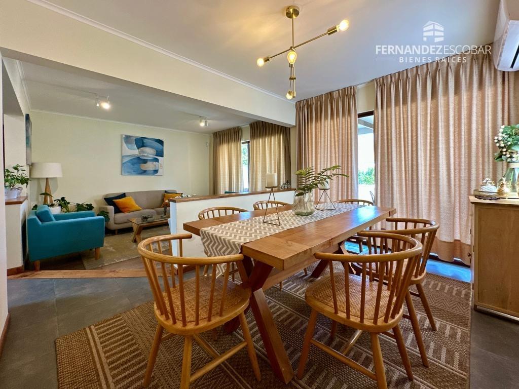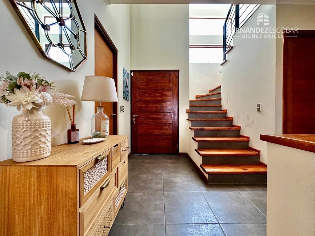 Cuenta con hall de ingreso, living y comedor en desnivel. Cocina amoblada y full equipada. Baño de visitas. Dormitorio principal con closet y baño en suite completo. Segundo piso con dos dormitorios con closet, baño completo y sala de estar. Lavanderia y logia.
