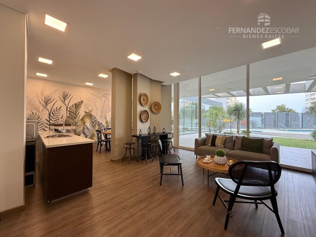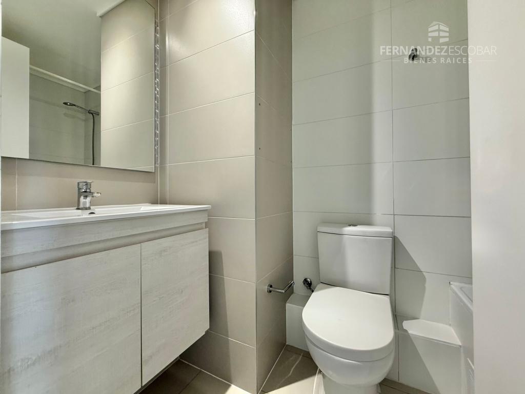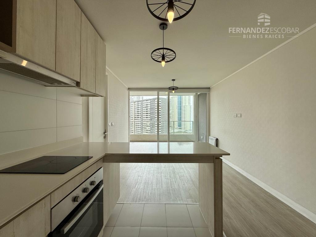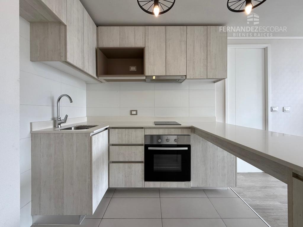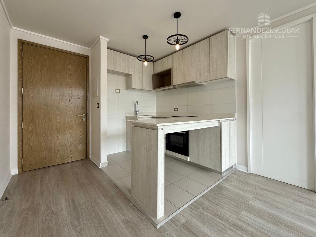Cuenta de living comedor con salida a la terraza. Cocina amoblada y equipada con vitrocerámica, horno y campana. Dormitorio con closet y baño en suite completo con tina. Closet con conexión para lavadora. Terraza conectada con living y dormitorio. Estacionamiento. Calefactor en sus ambientes. Pisos en porcelanato y ventanales con termopanel. Cortinas roller.