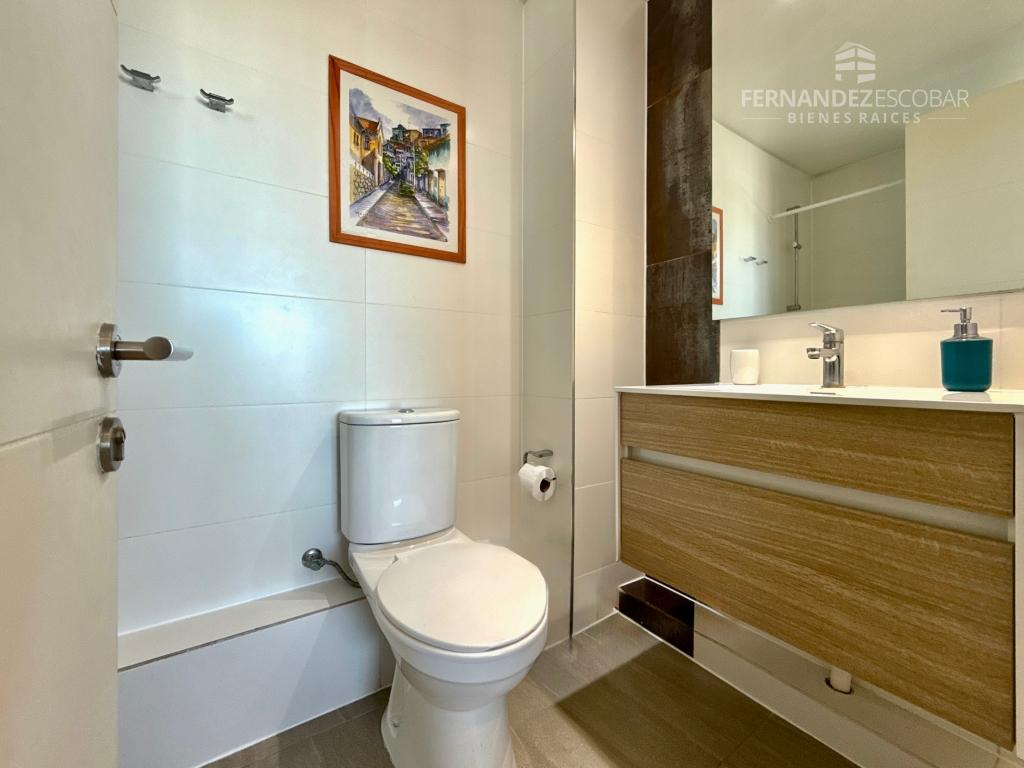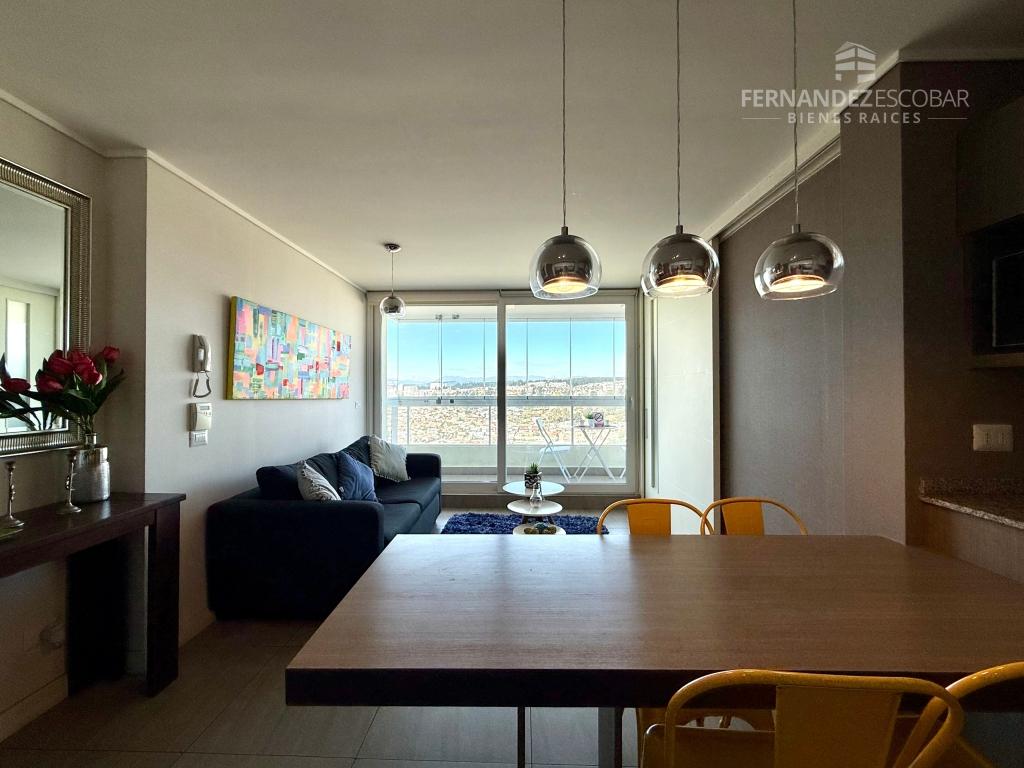 Cuenta de living comedor con salida a la terraza. Cocina amoblada y equipada con horno, vitrocerámica, campana y lavavajillas. Dormitorio con closet y baño en suite completo con tina y ventilación natural. Terraza con cierre panorámico. Bodega y 2 estacionamientos.