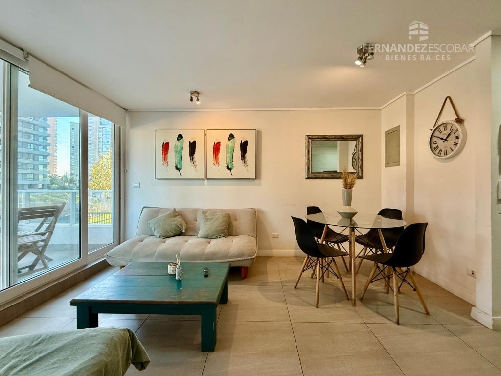 EQUIPAMIENTO: Pisos en porcelanato, mesada en granito y ventanas con termopanel. El edificio se encuentra tiene sala multiuso, gimnasio, piscina al aire libre, quincho y sauna. Doble ingreso y salida por Costas de Montemar y por Av. Concon Reñaca con locomoción en puerta.