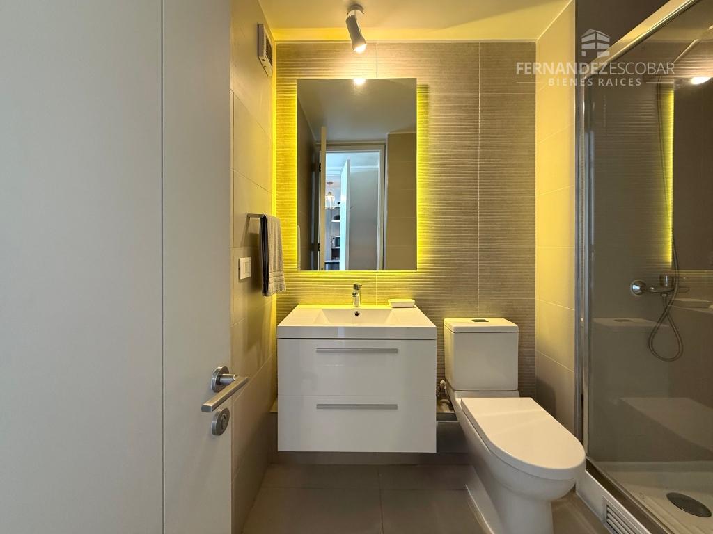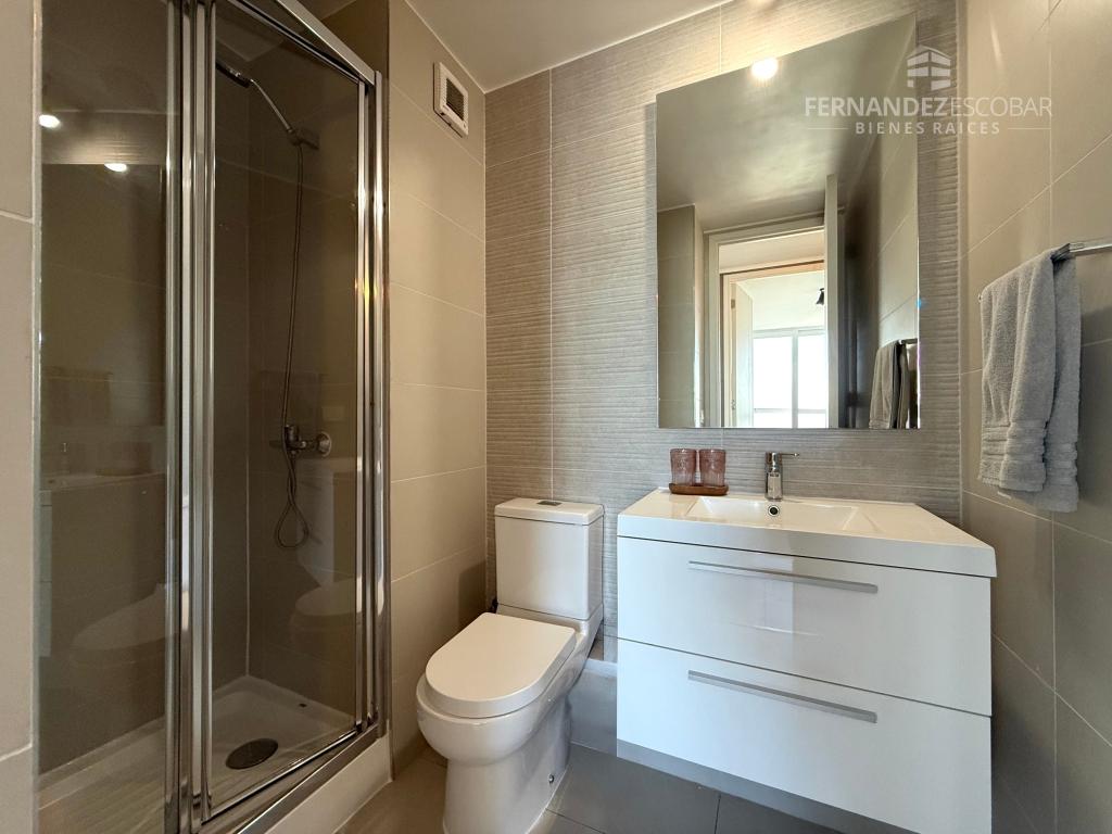 Cuenta de living comedor con salida a terraza. Cocina amoblada y equipada con horno, vitrocerámica, campana, refrigerador y microondas. Terraza con malla de seguridad. Dormitorios con closet, principal en suite con baño completo con ducha y shower Door. Segundo baño completo, también con ducha y shower.