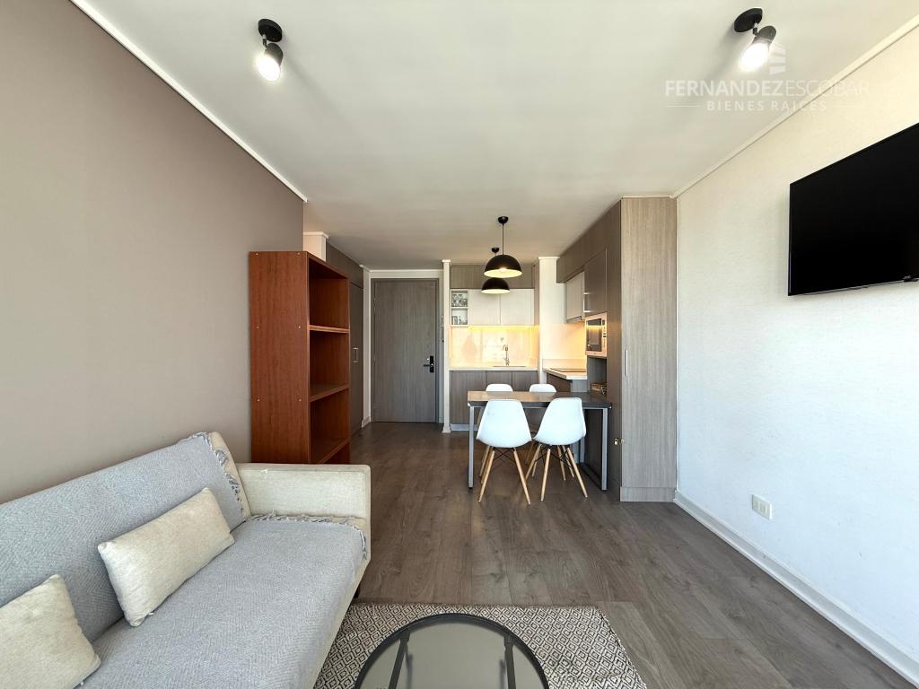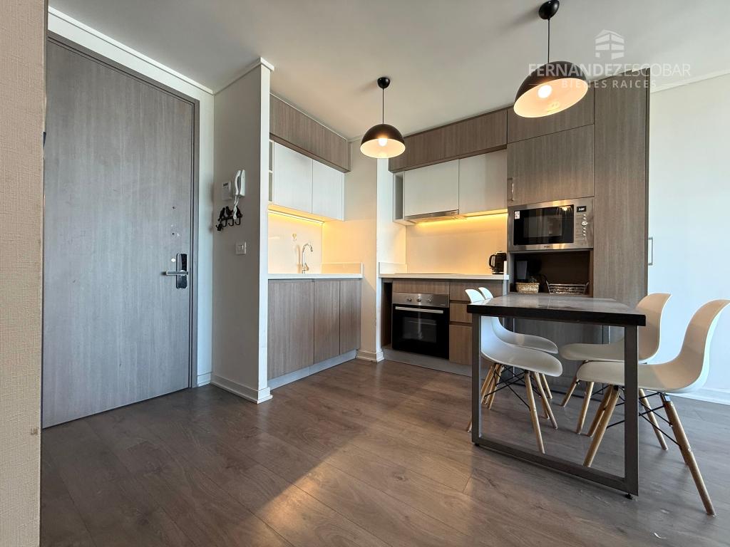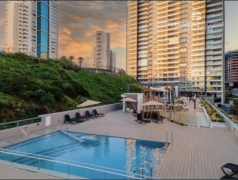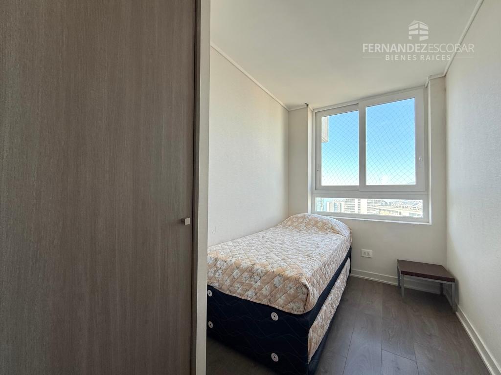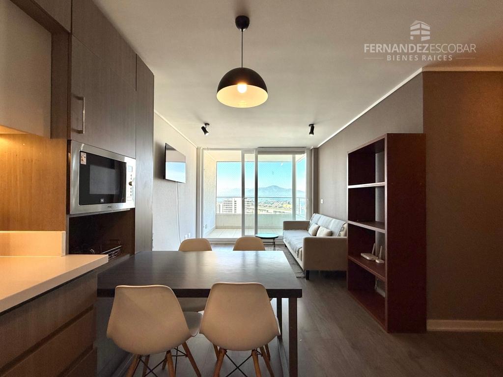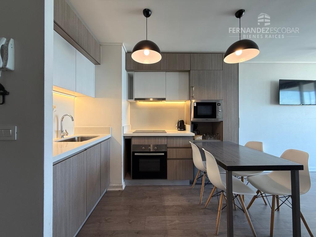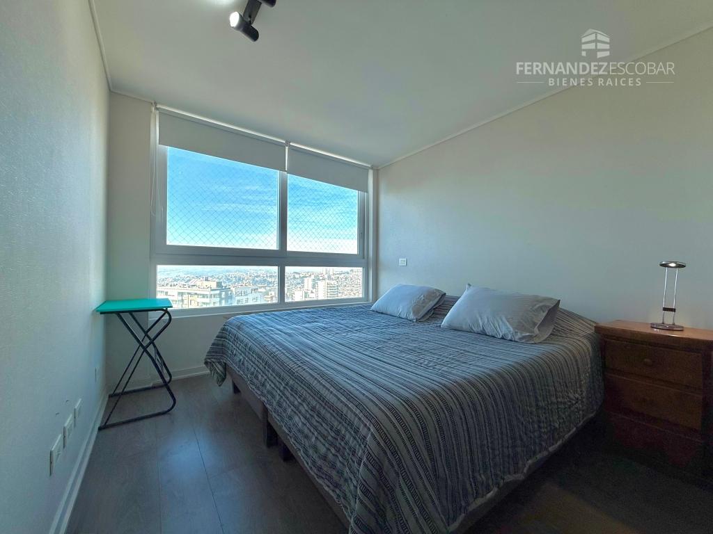 VENTA Departamento amoblado de dos dormitorios y dos baños. Ubicado en Costa de Montemar, Concon. Superficie Total: 55,44m2. Superficie Útil: 53,46m2. Superficie Terraza: 14,10m2. Orientación Nororiente. Piso 27.