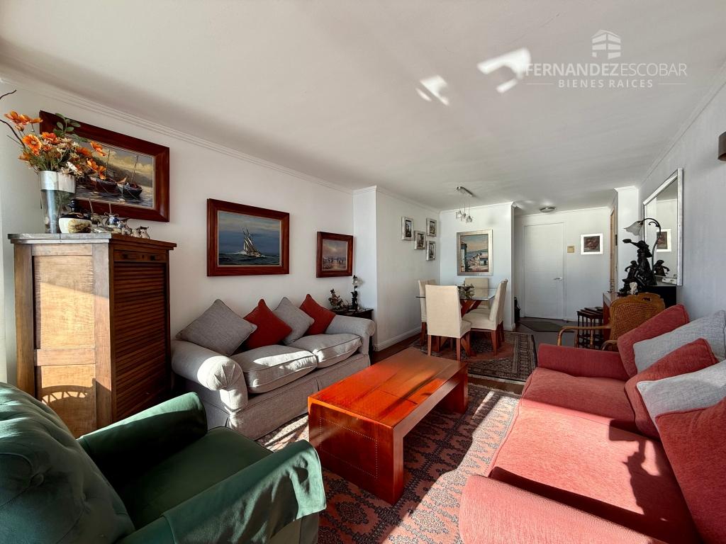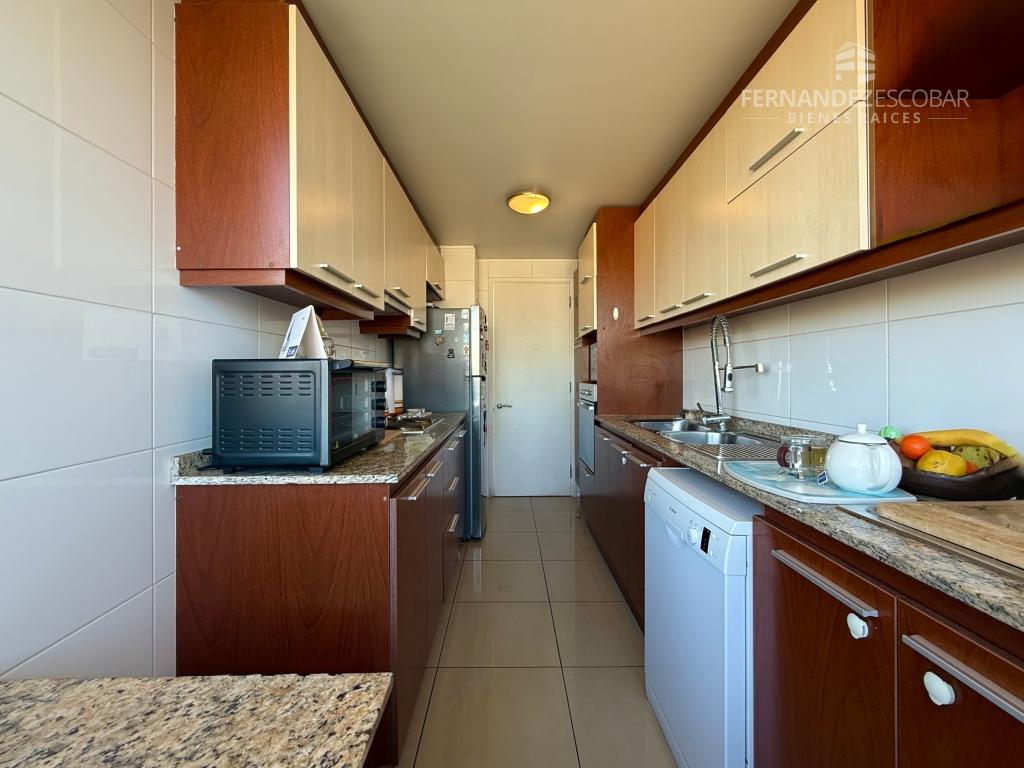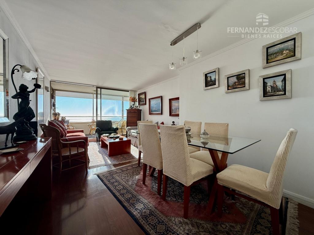El departamento cuenta con living comedor con salida a la terraza. Cocina separada, amoblada y equipada con horno, encimera eléctrica y campana. Logia integrada. Baño de visitas. Tres dormitorios con closet, principal con baño en suite completo con shower door. Tercer baño con tina. Terraza cerrada con vista maravillosa despejada al mar. Bodega y estacionamiento.