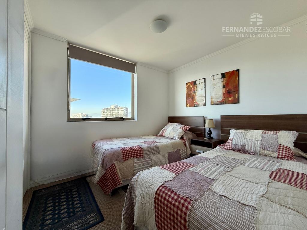VENDE Departamento de tres dormitorios y tres baños. Ubicado en Costa de Montemar, Concon. Superficie Total: 122m2. Superficie útil: 108m2. Superficie Terraza: 14m2. Orientación Poniente. Piso 24.