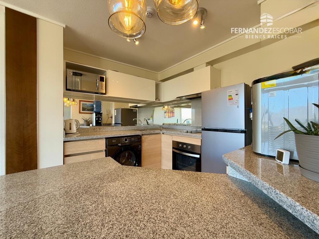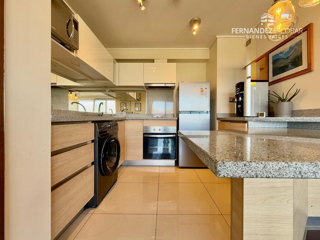 Cuenta de Living comedor con aire acondicionado. Cocina amoblada y full equipada con encimera, horno empotrado, campana, refrigerador, microondas y lavadora. Dormitorio con walking closet, salida a la terraza y baño en suite. Cuenta con estacionamiento