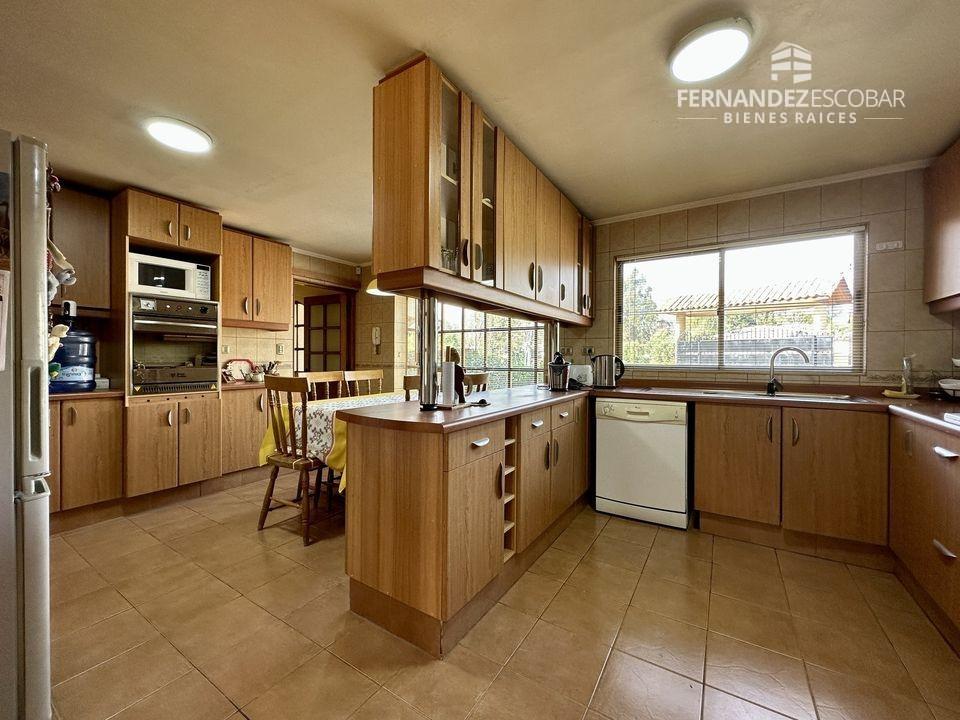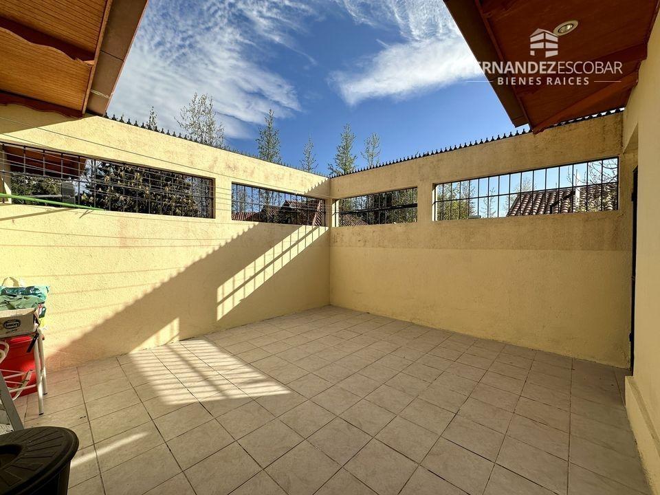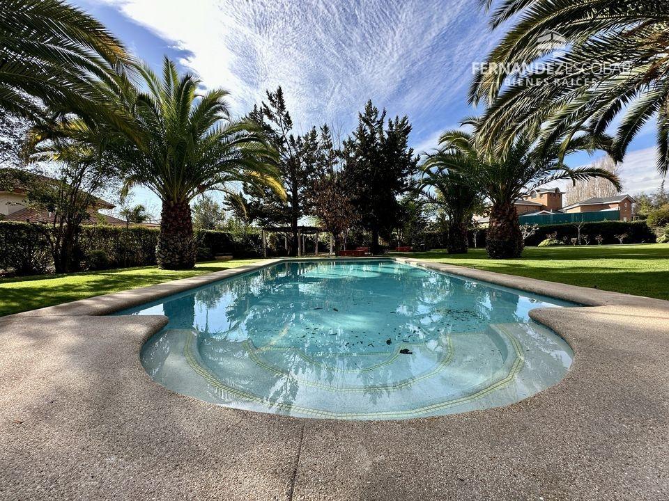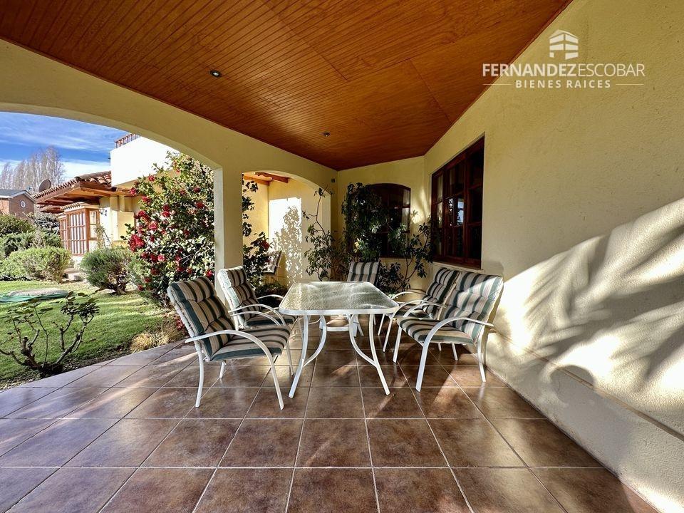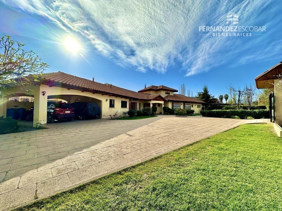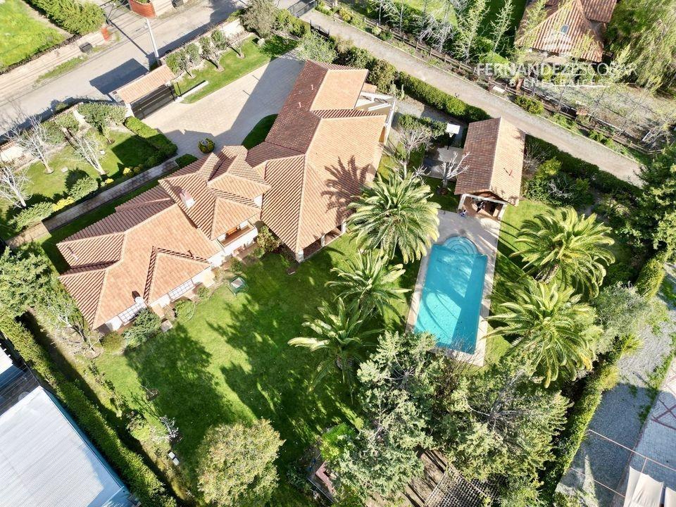 EXTERIORES: Doble portón de ingreso. Patio con quincho, psicina de 5x10, terraza cubierta, tres bodegas, canil y patio de servicio. Ante jardin con estacionamiento para seis vehículos, dos cubiertos. Múltiples árboles frutales, entres ellos podemos encontrar: durazno, peras, manzanas, caquis, higuera, limones, ciruelo, naranja, etc. Además cuenta con árboles nativos como liquidámbar y cipreses.