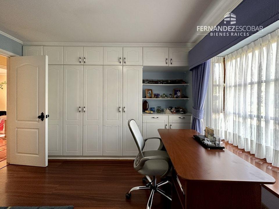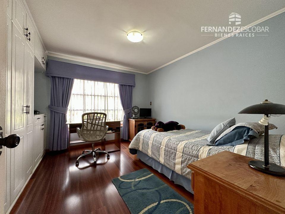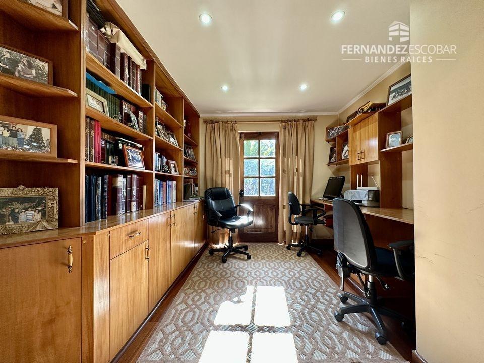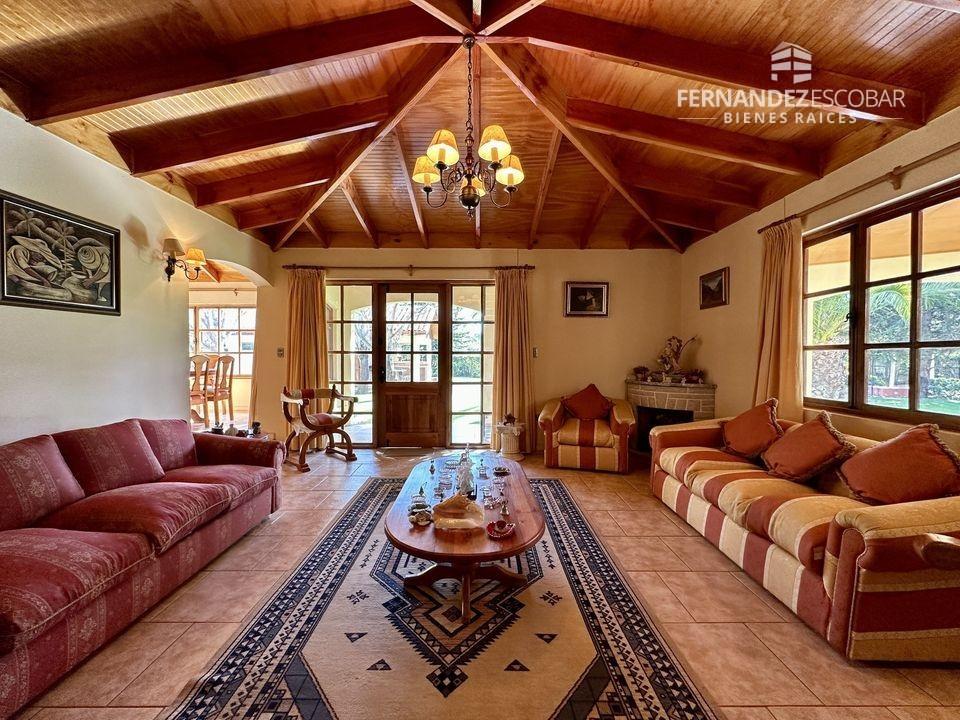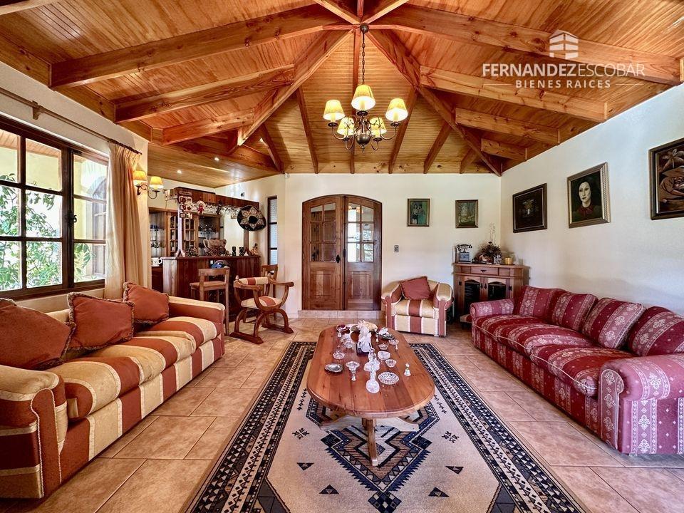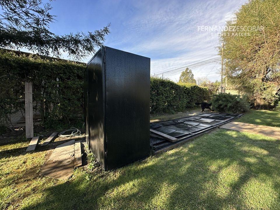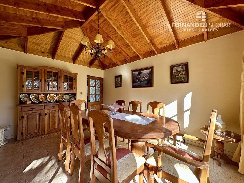 EXTERIORES: Doble portón de ingreso. Patio con quincho, psicina de 5x10, terraza cubierta, tres bodegas, canil y patio de servicio. Ante jardin con estacionamiento para seis vehículos, dos cubiertos. Múltiples árboles frutales, entres ellos podemos encontrar: durazno, peras, manzanas, caquis, higuera, limones, ciruelo, naranja, etc. Además cuenta con árboles nativos como liquidámbar y cipreses.