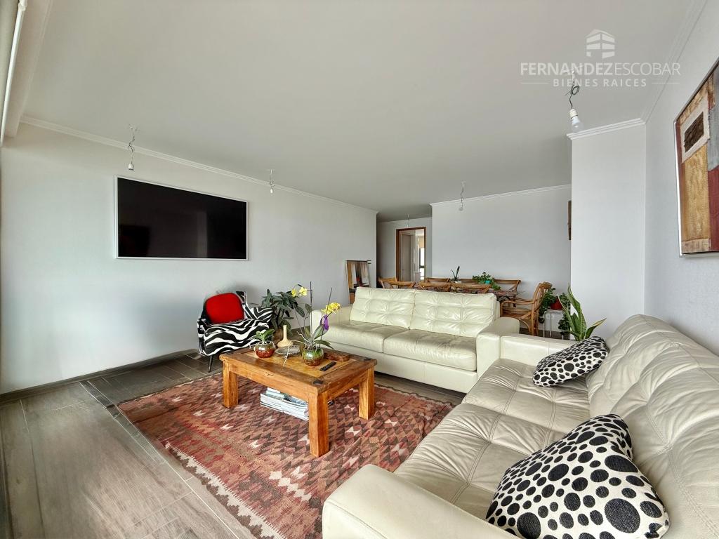 VENDE Departamento de tres dormitorios y dos baños. Ubicado en Reñaca Norte de Viña del Mar. Superficie total: 130m2. Superficie Útil: 110m2. Superficie Terraza: 20m2. Orientación Poniente. Piso 6.