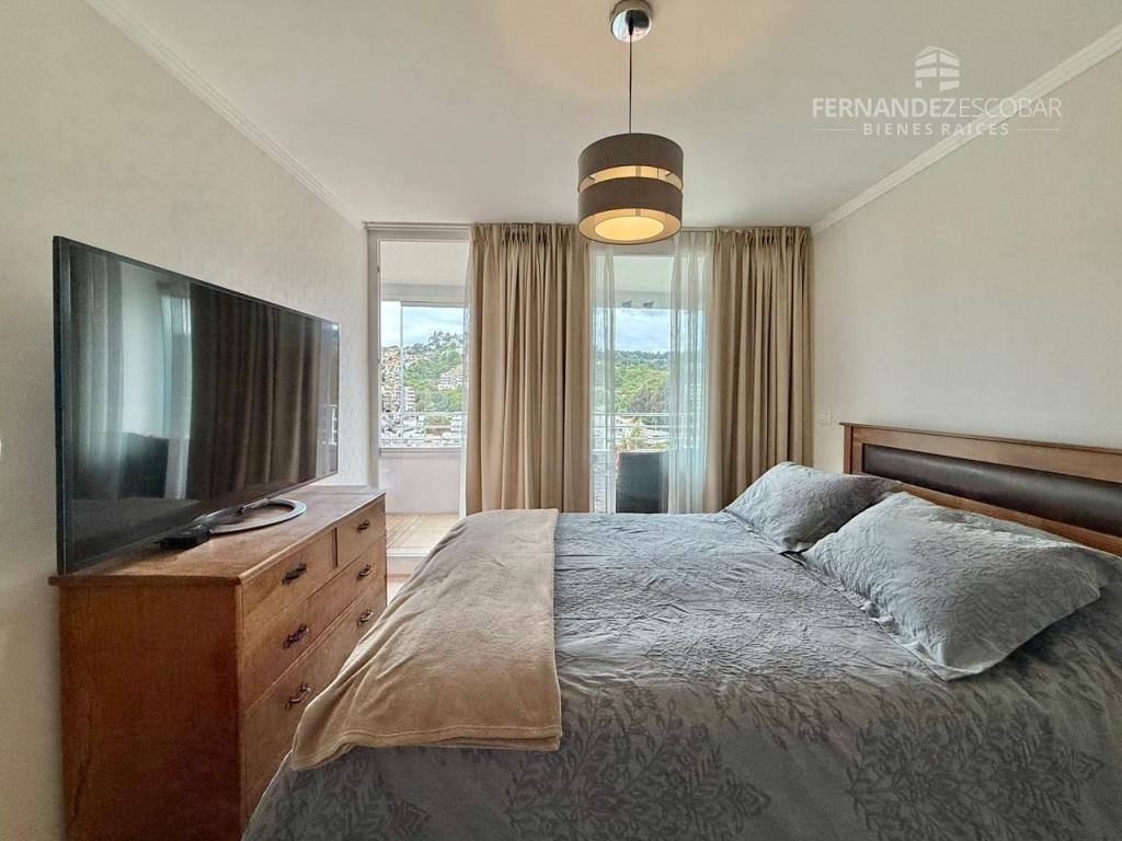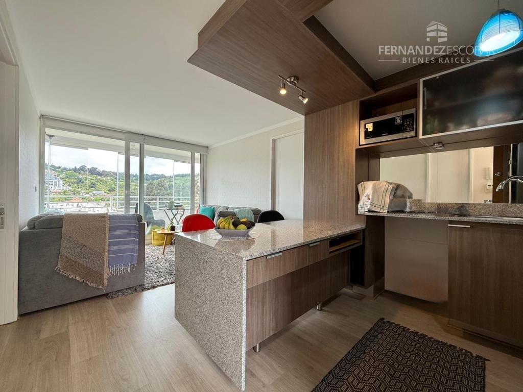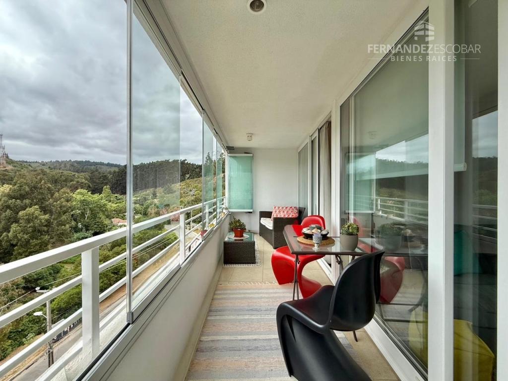 Cuenta de living comedor con salida a la terraza. Cocina amoblada y equipada con horno, encimera eléctrica y horno empotrado. Espacio para conexión de lavavajillas. Logia cerrada con muebles y conexión para lavadora. Dormitorios con closet y baño en suite completos con tina. Dormitorio principal con salida a la terraza. Terraza con cierre vidriado tipo libro, panorámico y con linda vista al bosque de Reñaca. Posee 2 estacionamientos al descubierto y bodega de 3,33m2.