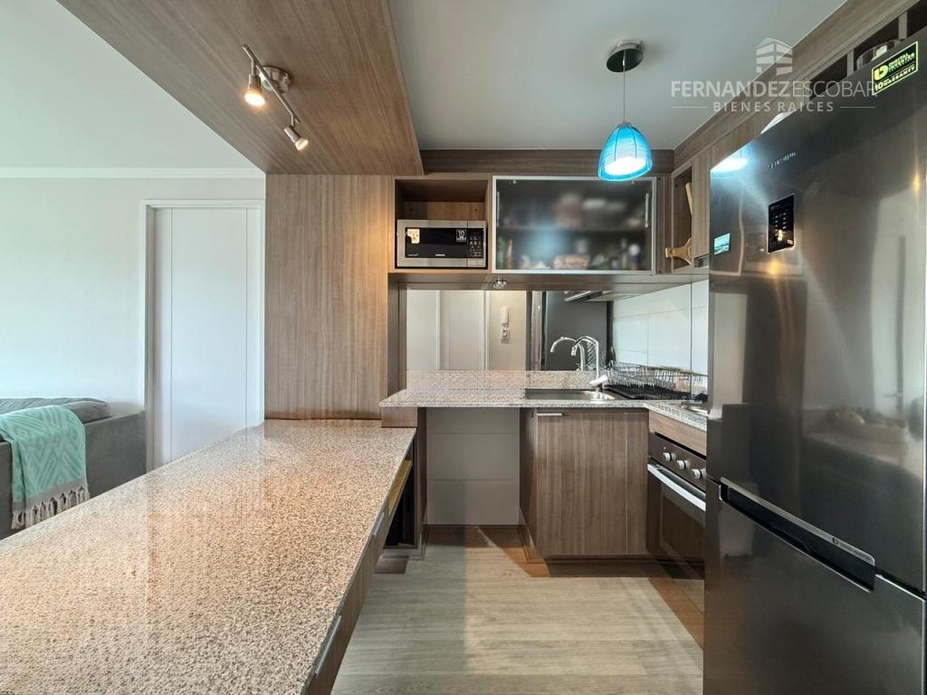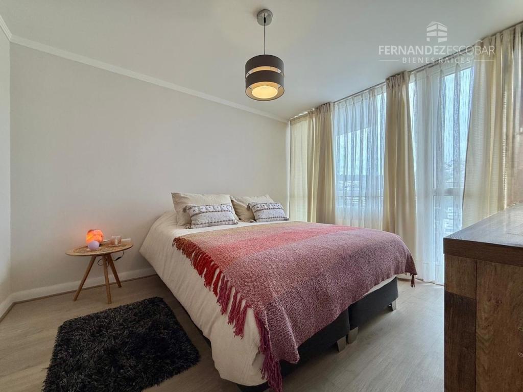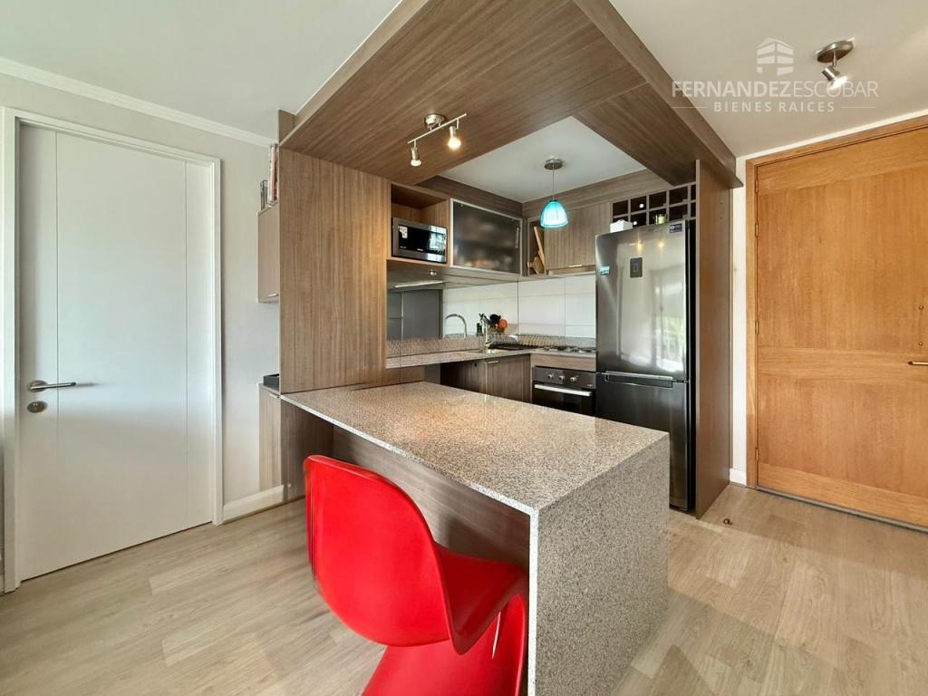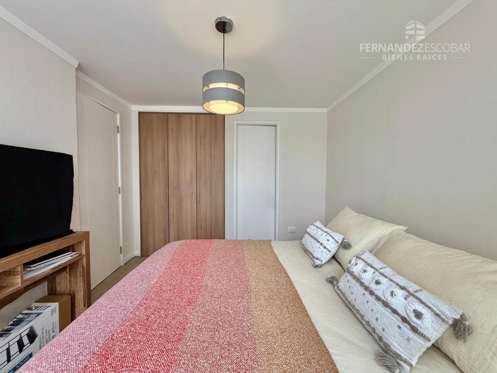 El condominio cuenta con acceso controlado, estacionamiento de visitas, piscina exterior, sala multiuso, áreas verdes y quincho. Paga de gastos comunes $116.000.