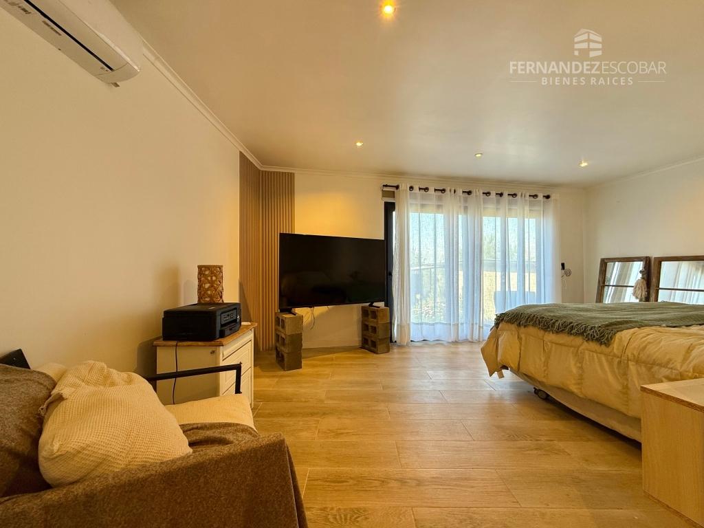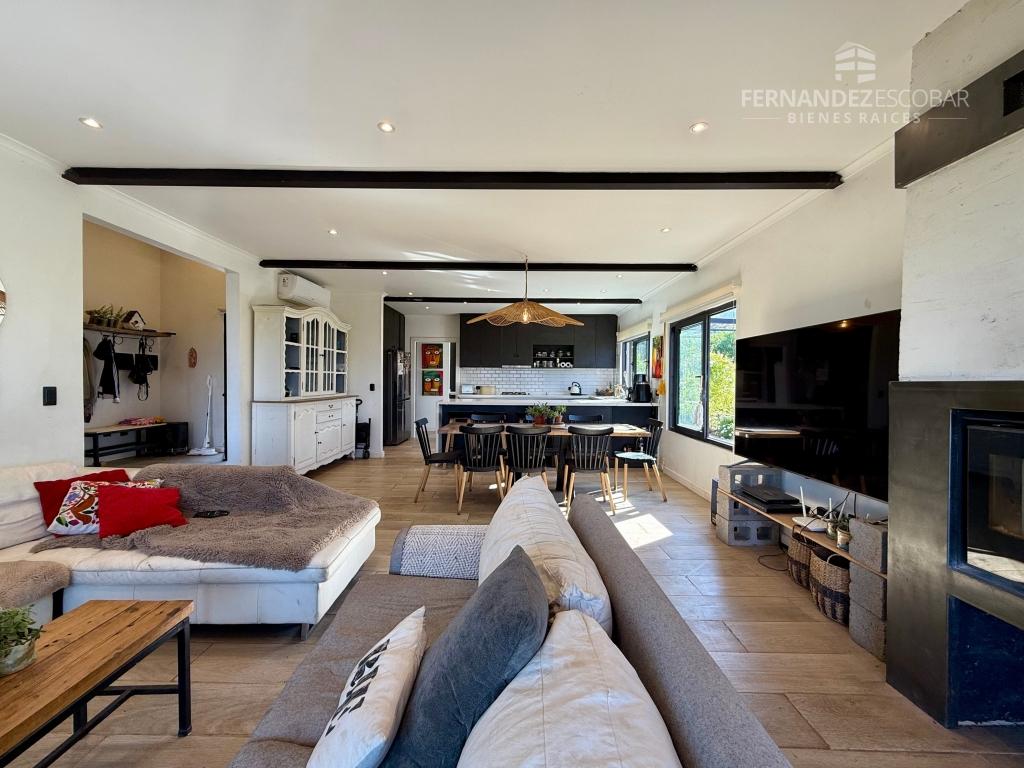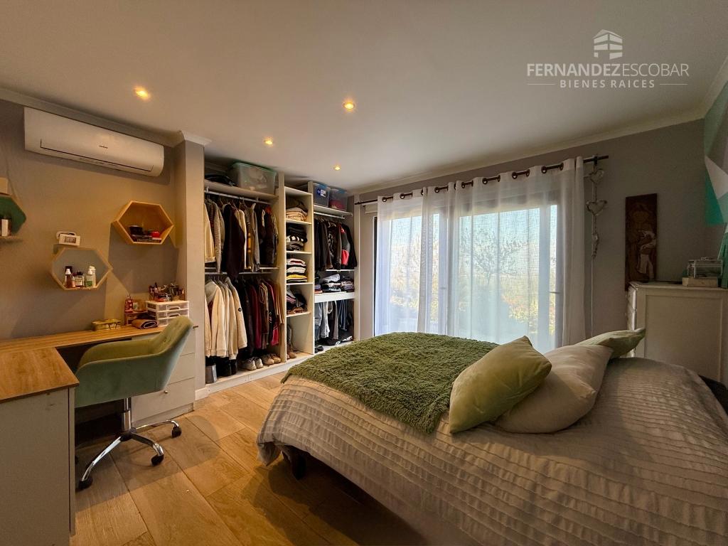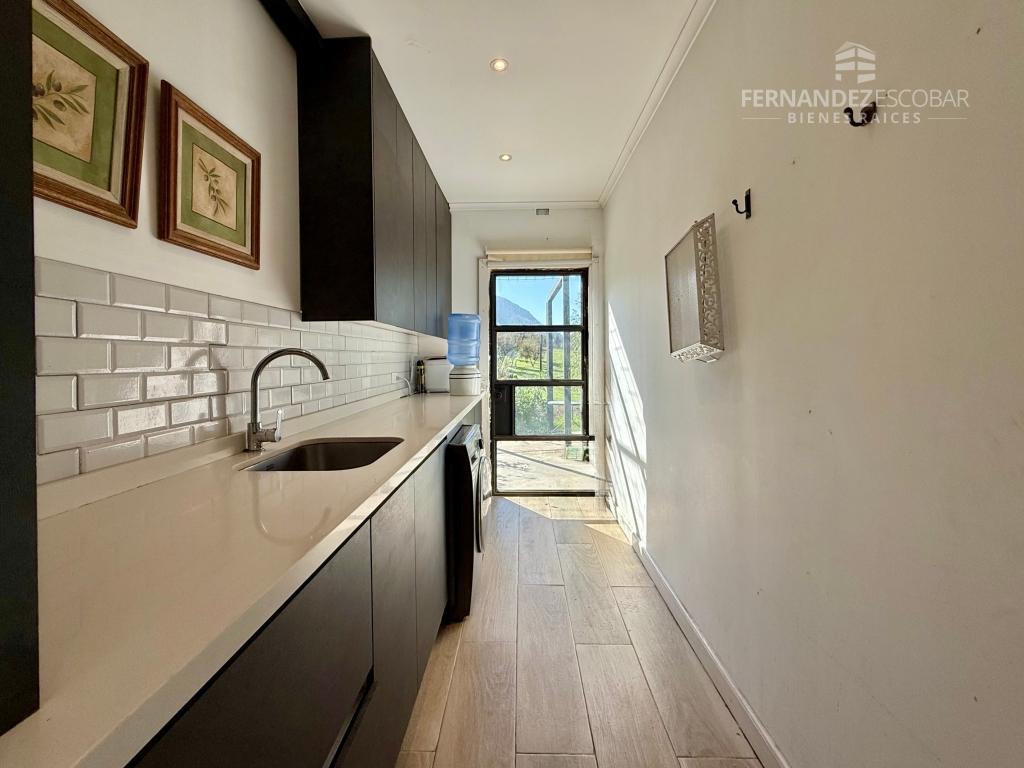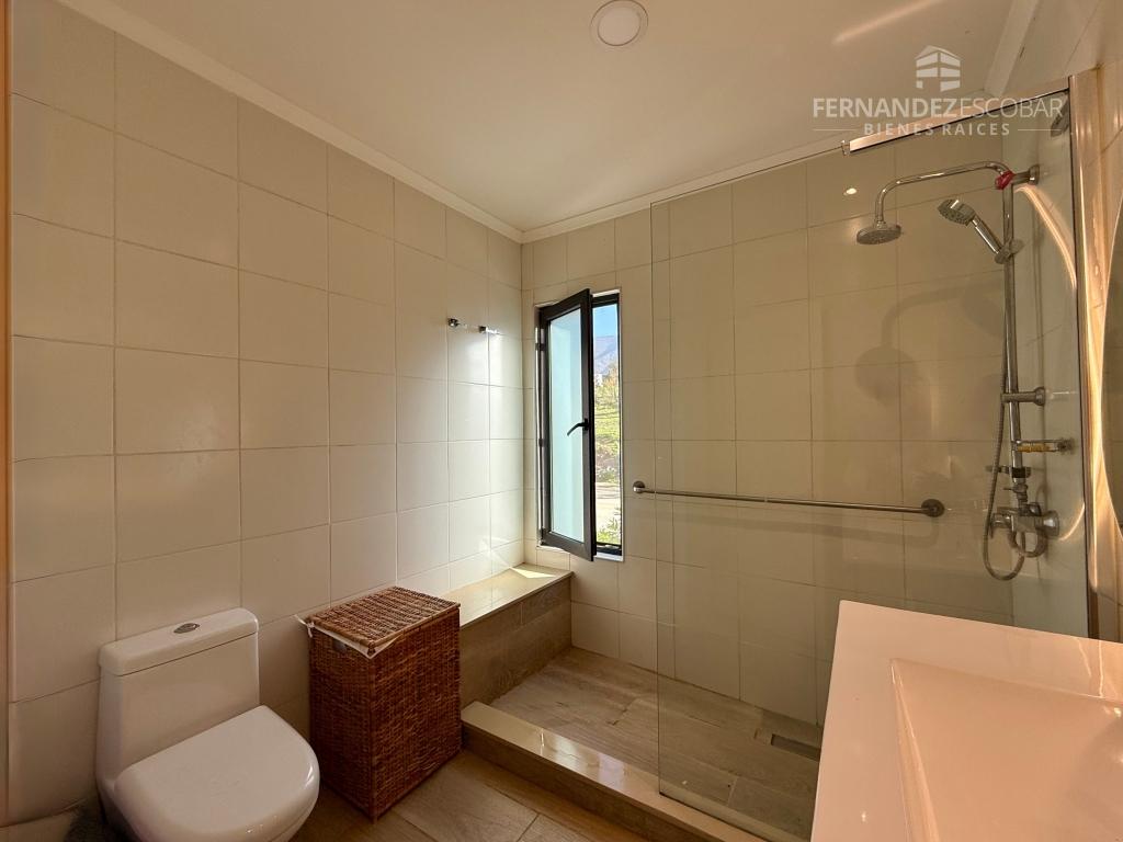 EXTERIORES: Amplio patio con jardín y árboles frutales como naranjo, limonero, paltos, durazno, pomelo, etc. terrazas de cemento pulido, piscina 10x4. Quincho independiente completo con parrilla, comedor, lavaplatos, terraza con deck de hormigón techado de 90 m². Baño completo y dormitorio. Fogón empedrado. Hermosa vista hacia el valle y la cordillera de Los Andes. Portón eléctrico y estacionamiento techado para cuatro vehículos. Planta de tratamiento y recirculación de agua (máxima el ahorro del agua para el riego). Sistema de riego por goteo.