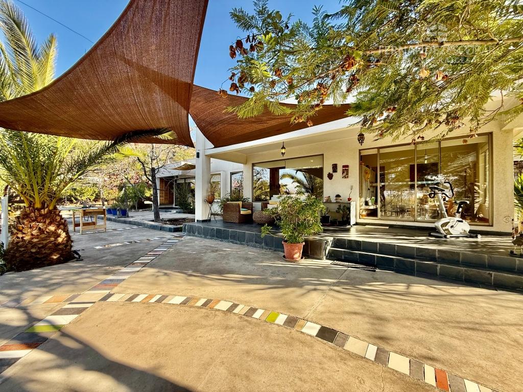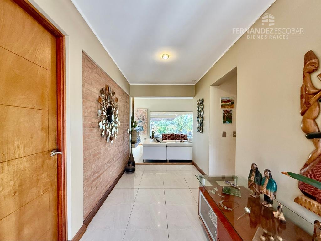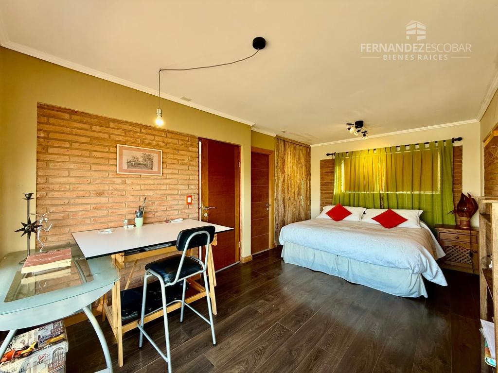 EXTERIORES: Dormitorio de visitas con baño en suite, aire acondicionado y terraza. Lavandero y bodega. Estacionamiento techado para cuatro vehículos. Amplio jardín y terraza. Piscina de 3x10. Cancha de futbolito.