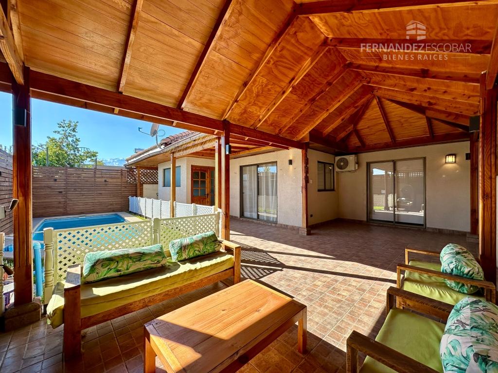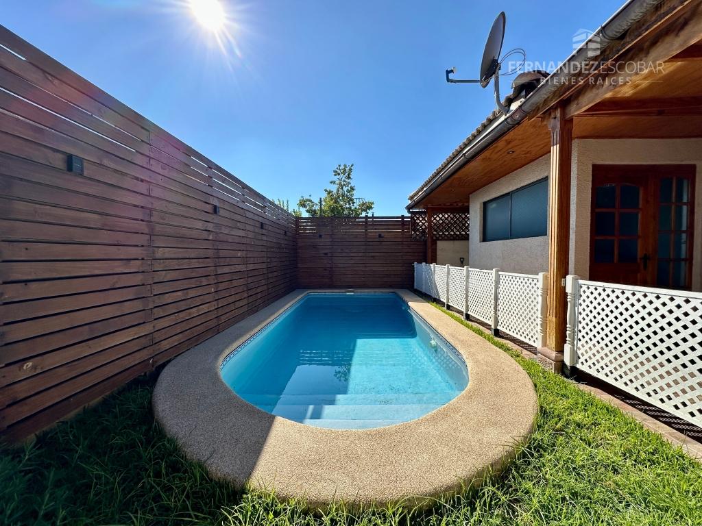 ARRIENDO Casa Amoblada con piscina de 3 dormitorios (uno suite y con vestidor), 2 baños, living comedor con bosca, cocina amoblada y equipada. Logia cerrada. Propiedad ubicada en Los Claveles, Viñedos. San Esteban.