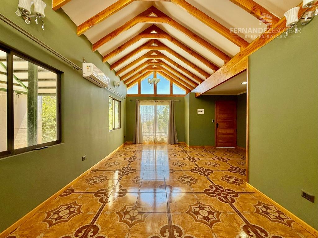 EXTERIORES: Pario en su frontis con árboles frutales y pasto natural; cuenta con riego automático. Estacionamiento con cobertizo para 4 vehículos. Bodega y lavandería. Patio interno. Construcción en metalcom y pisos en cerámico. Ubicada en sector muy tranquilo, rodeado de naturaleza. A pocos minutos del centro de San Esteban.