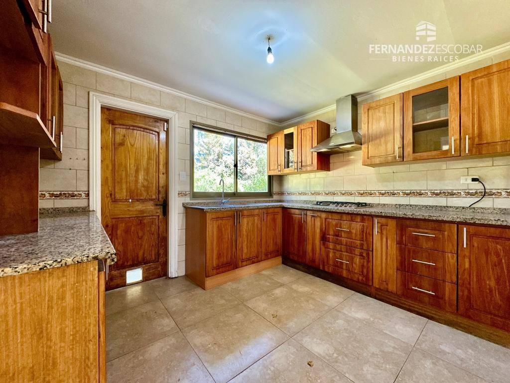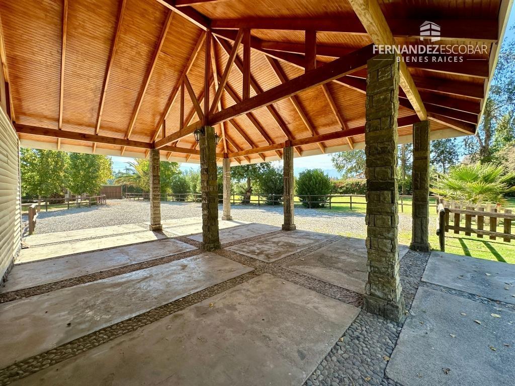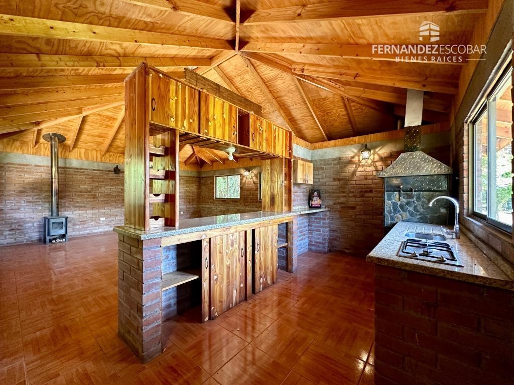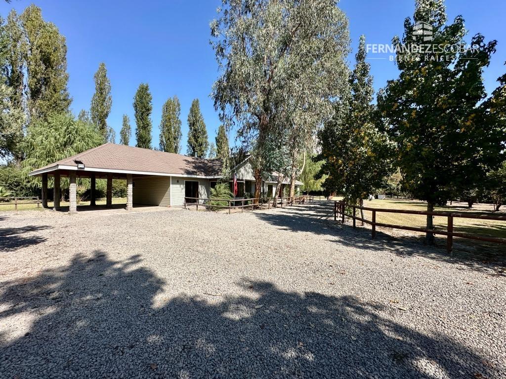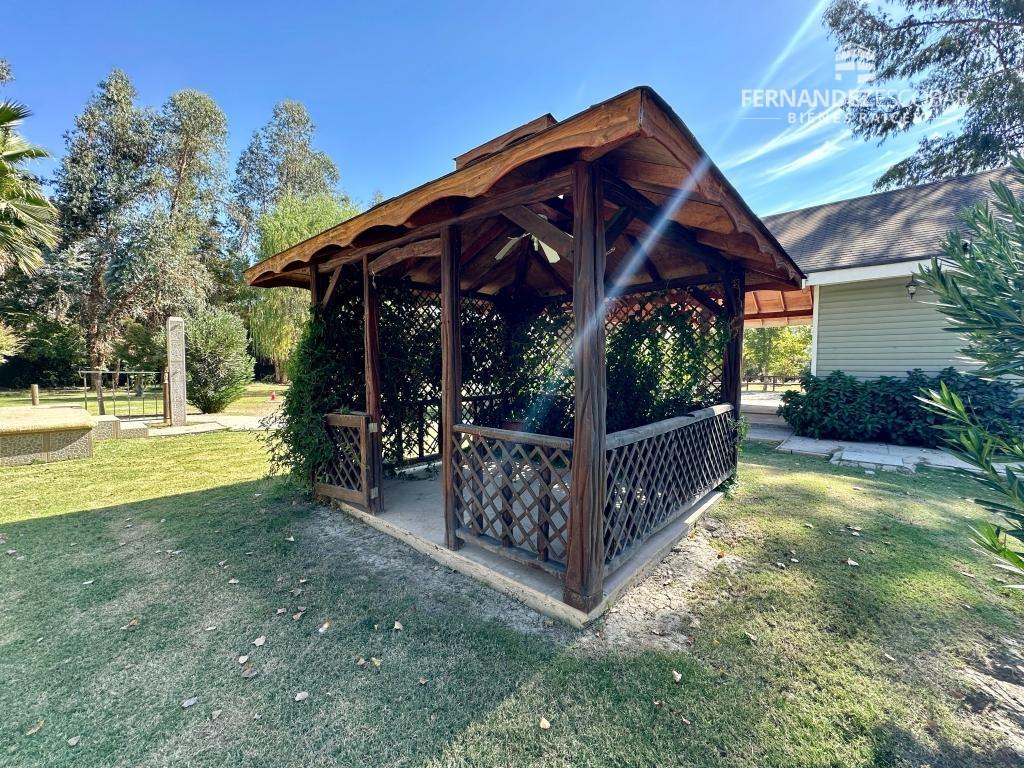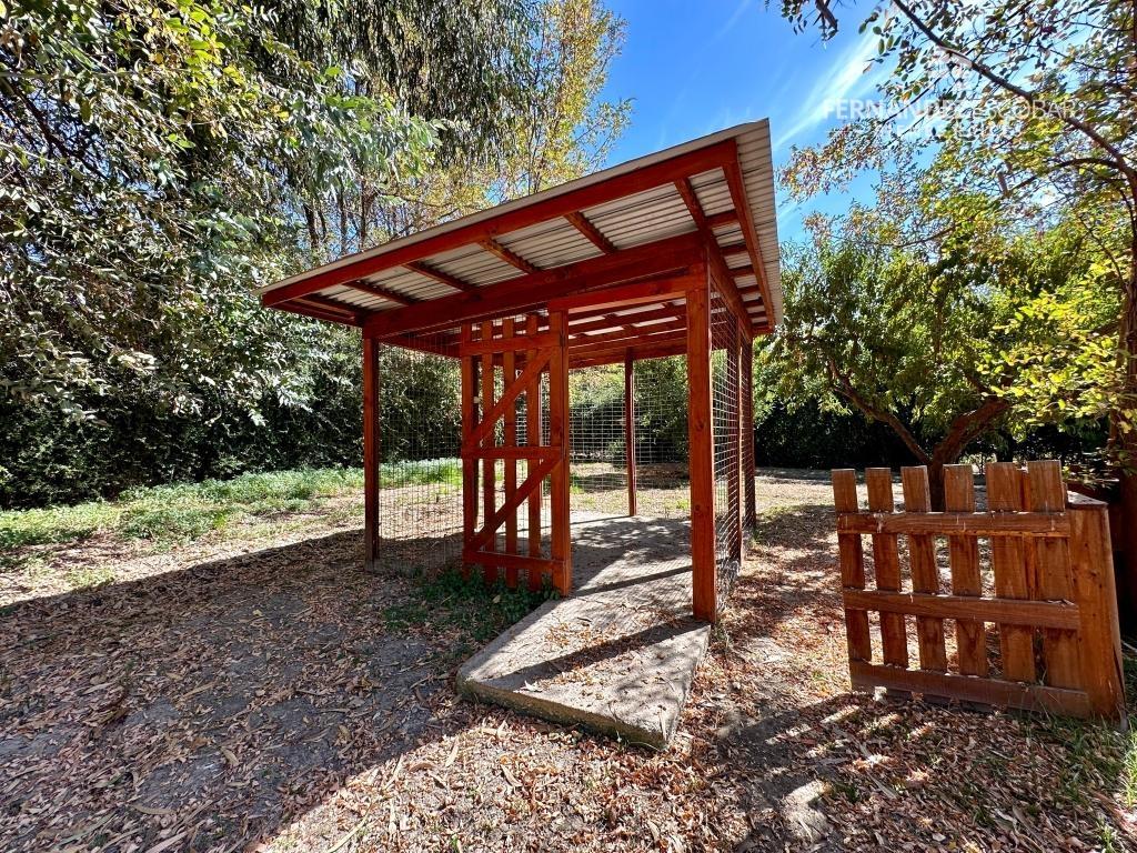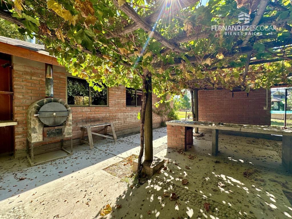 EXTERIORES: Gran patio con varios metros de pasto natural, árboles frutales, pinos, palmeras, entre otras variedades. Invernadero y huerta. Dos caniles. Quincho cerrado de 40m2 y completo con parrilla, bosca y baño. Segundo quincho al aire libre cubierto con parras para dar sombra, horno y mesada. Bodega de 9m2 y leñera. Pérgola con ventilador. Piscina con cobertor. Estacionamiento techado para 4 autos. Portón de acceso automático.