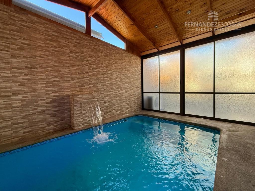 EXTERIORES: Piscina cubierta 10x3 con hidromasaje y calefaccionada mediante un sistema basado en una bomba de calor. Quincho con baño. Estacionamiento con cobertizo y portón eléctrico.