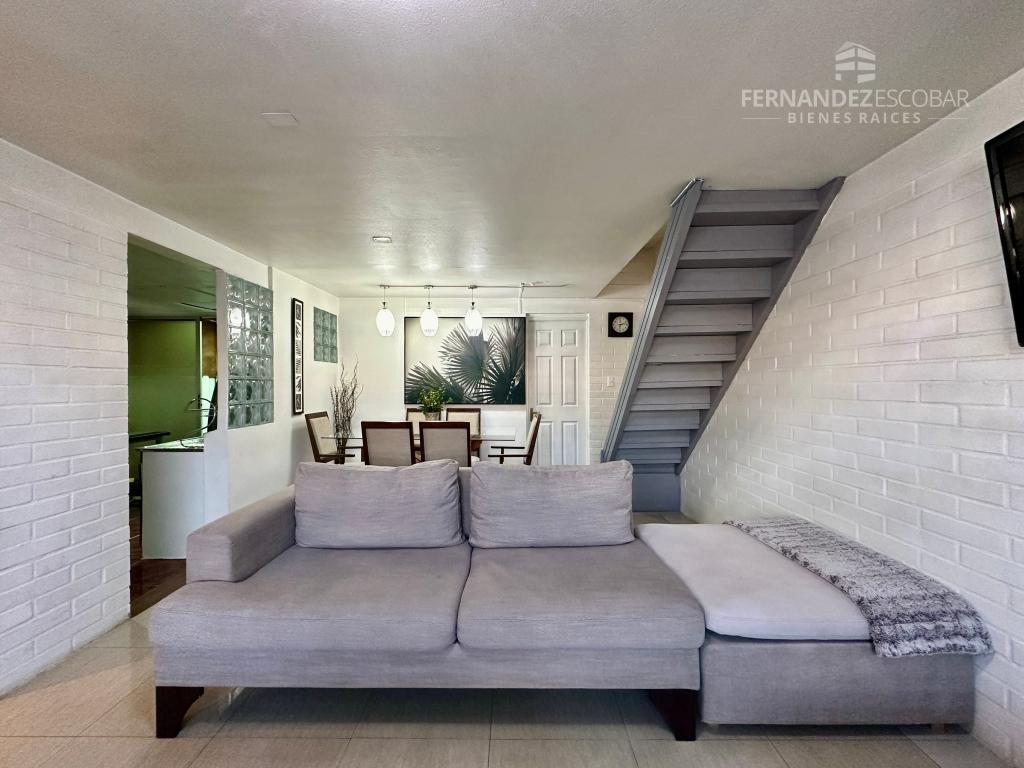 PRIMER PISO: Hall de ingreso. Living comedor con aire acondicionado y bosca. Cocina amoblada con salida a patio techado. Amplio baño.