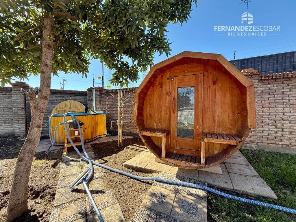 EXTERIORES: Frontis con estacionamiento techado para 8 vehículos. Patio trasero con lindo jardín, piscina de 6x12 con cierre de seguridad, sauna, tinaja, quincho completo y dos amplias terrazas.